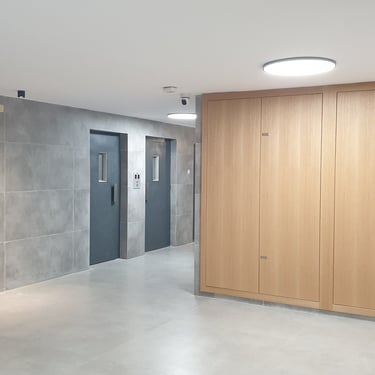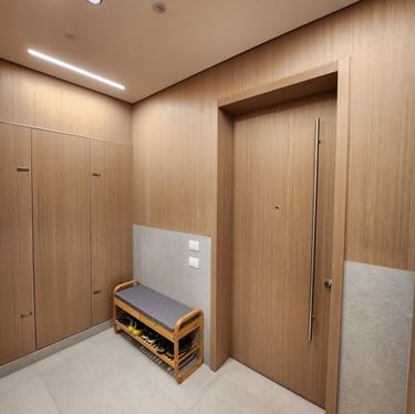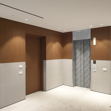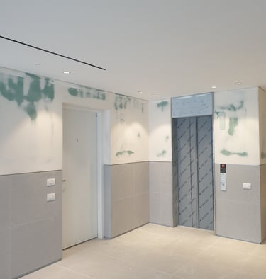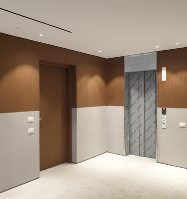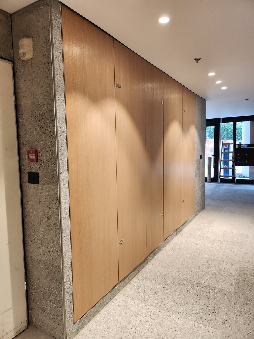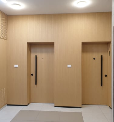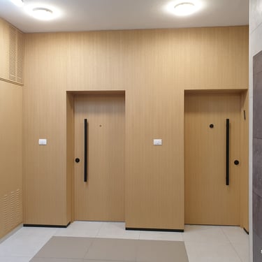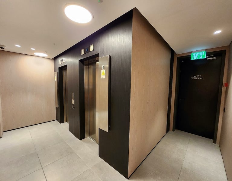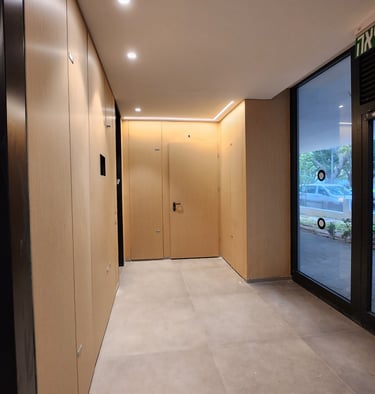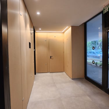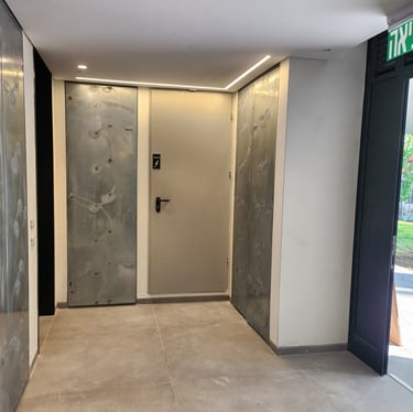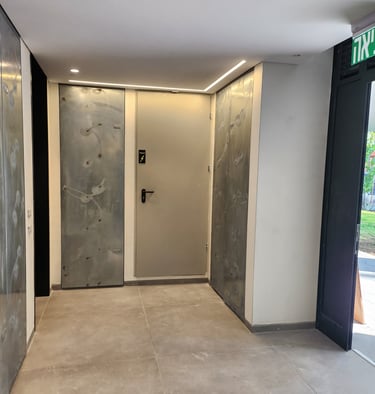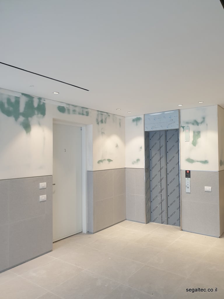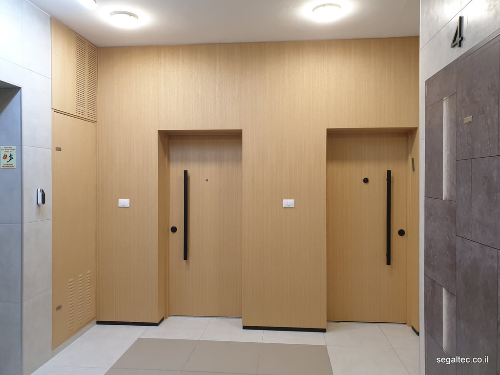 ציפוי קירות ,דלתות מערכות (פח) ודלתות אש בפורניר בלובי בניין