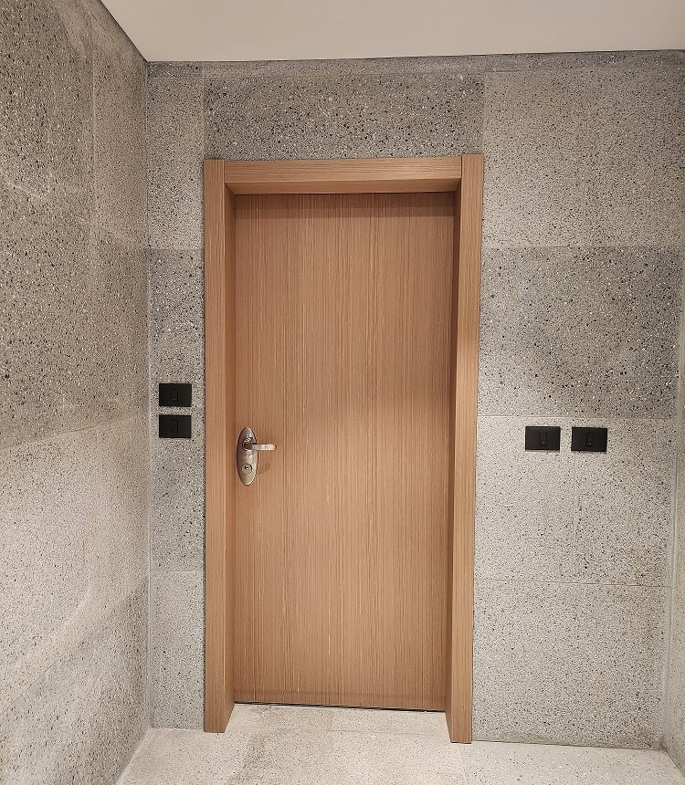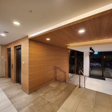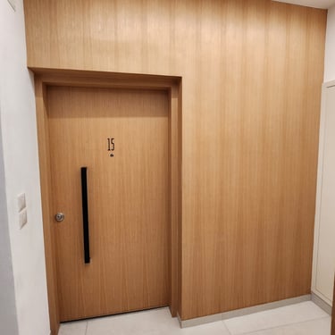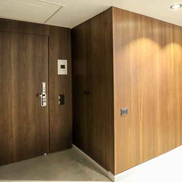 ציפוי קירות ודלתות אש בפורניר בלובי בניין